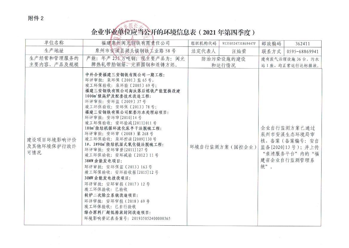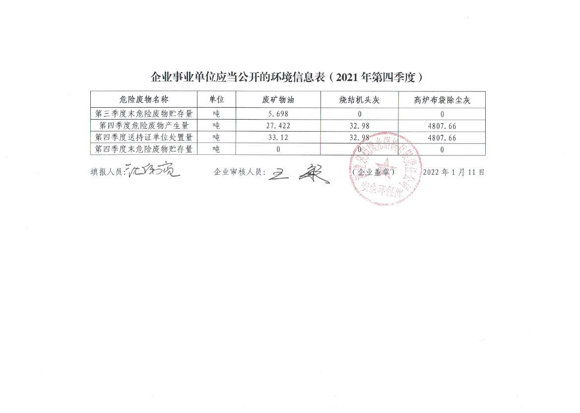 企業(yè)事業(yè)單位應(yīng)當(dāng)公開的環(huán)境信息表(2021年度第四季度)