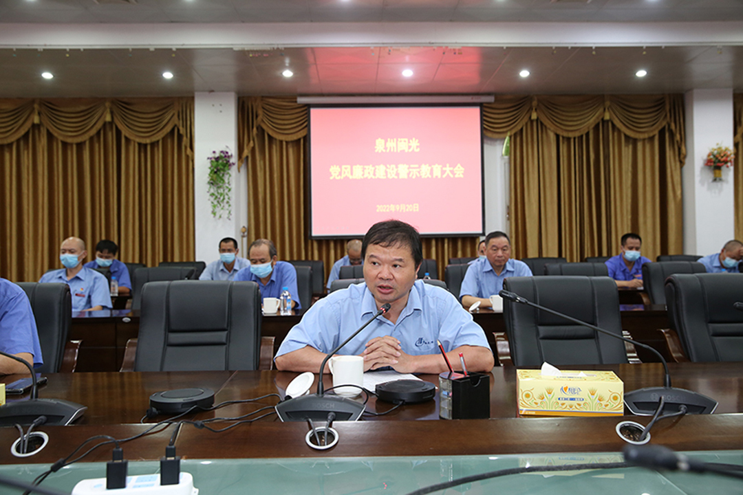 9月20日上午,泉州閩光公司組織召開黨風廉政建設(shè)警示教育會,深入貫徹落實中央八項規(guī)定精神,集中學習了《中國共產(chǎn)黨紀律處分條例》和上級紀委“中秋、國慶”期間有關(guān)紀律文件精神,安排部署“兩節(jié)”期間黨風廉政建設(shè)工作,為全司黨員干部敲響廉政警鐘。