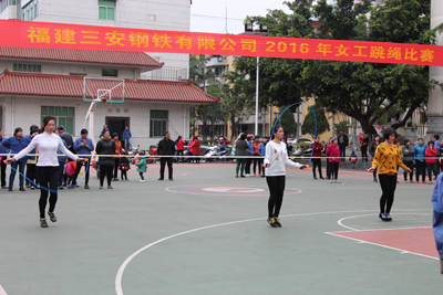 為讓廣大女員工度過一個充實(shí)、愉快、富有意義的節(jié)日,公司工會于3月15日舉行女工跳繩比賽,比賽分為單人跳繩和團(tuán)體跳繩。經(jīng)過激烈角逐,曹麗艷、謝慶紅、趙琴慧分獲單人跳繩前三名,直屬二支部、綜合廠支部、供銷支部分獲團(tuán)體跳繩前三名。