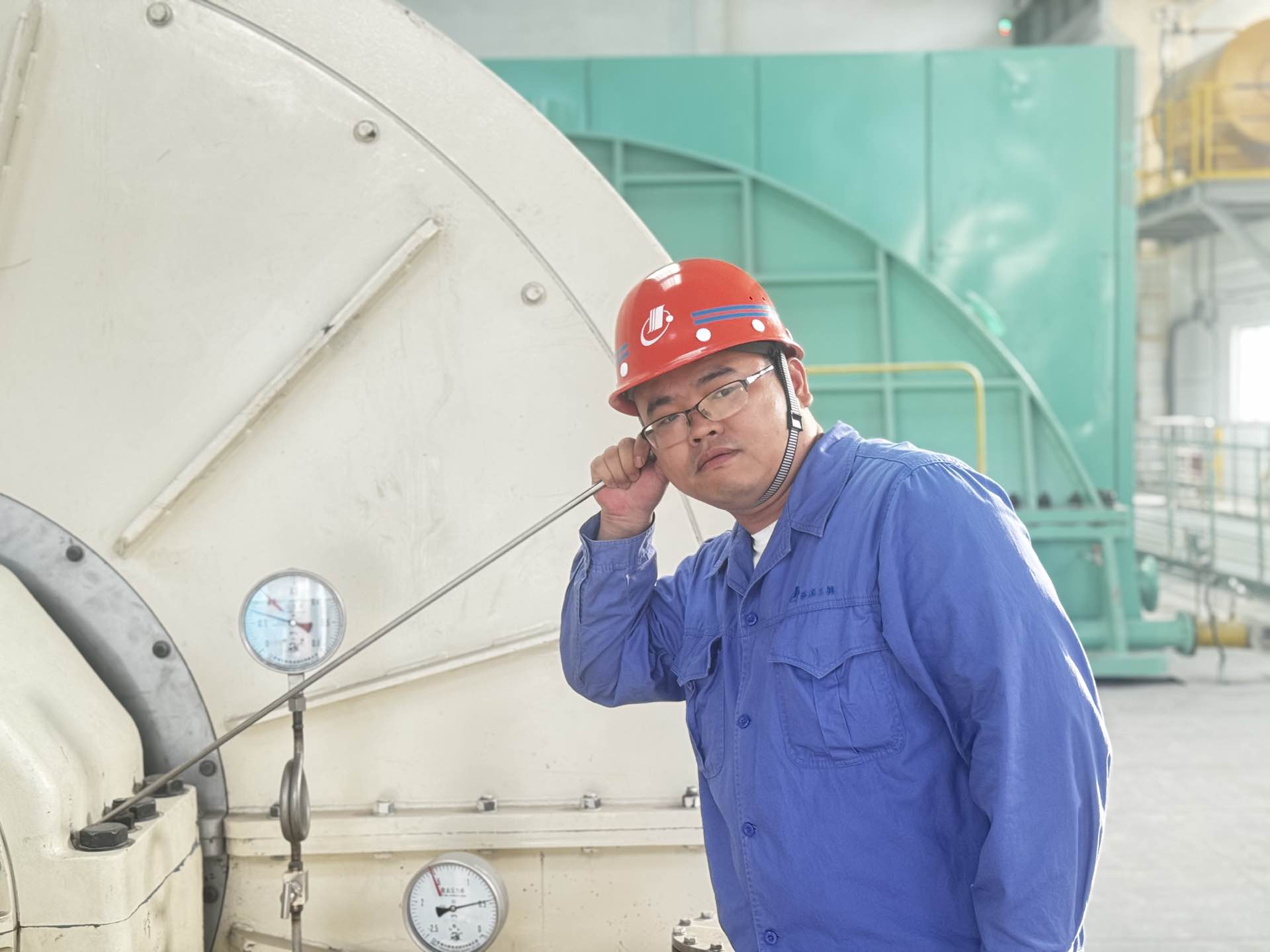 泉州閩光動(dòng)能事業(yè)部發(fā)電作業(yè)區(qū)里,機(jī)器轟鳴不絕,高溫悶熱的氣息包裹著每一寸空間——這里,便是汽輪機(jī)值班員吳少平常年堅(jiān)守的“戰(zhàn)場(chǎng)”。他手持測(cè)溫槍與測(cè)振儀,日復(fù)一日穿梭在縱橫交錯(cuò)的設(shè)備與管道之間,將每一次精檢細(xì)巡都做得一絲不茍,用腳步丈量安全,以專注守護(hù)運(yùn)行。