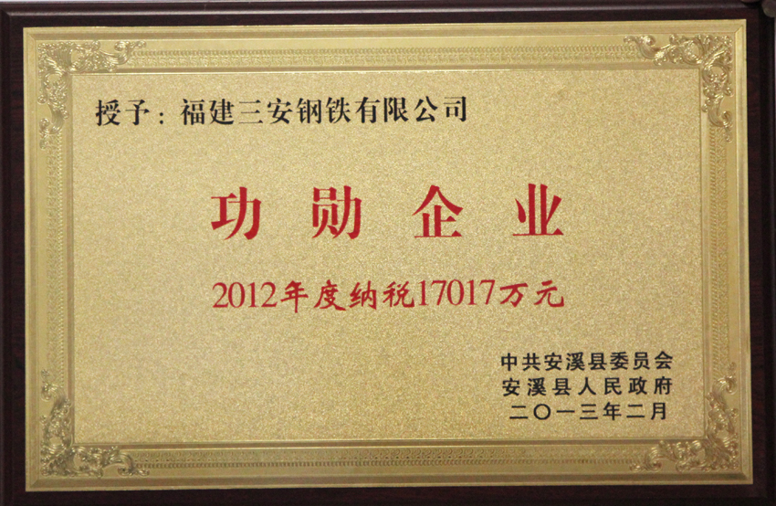 功勛企業(yè)2012年度納稅17017萬(wàn)元