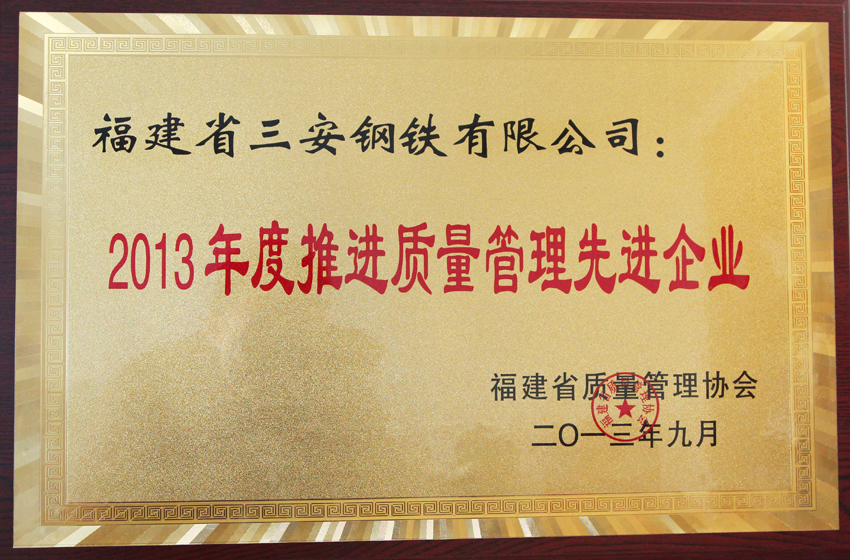2013年度推進(jìn)質(zhì)量管理先進(jìn)企業(yè)
