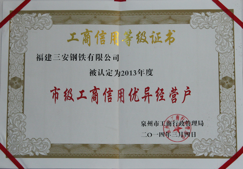 2013年度市級工商信用優(yōu)異經營戶